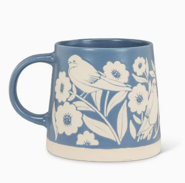 Add Wide Base Mug with Leaves & Birds-Blue to the cart